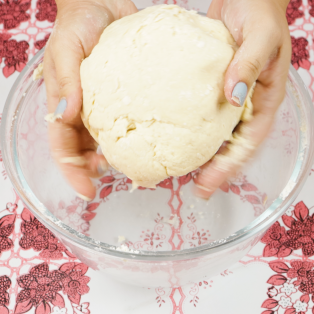 3.Com a mão, mexa a massa até ela ficar homogênea