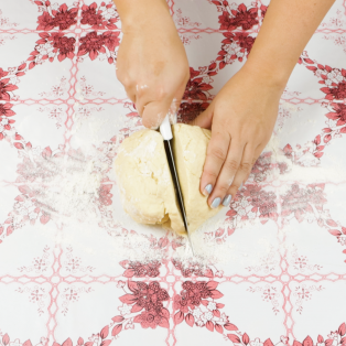15.Com uma faca, faça um “X” no meio da massa para o ar poder sair