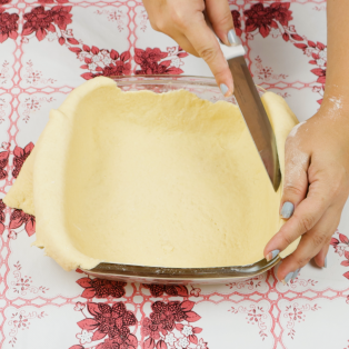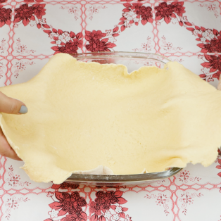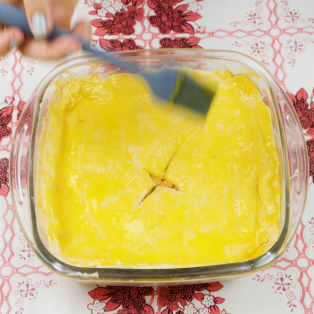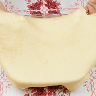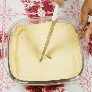 6.Em uma travessa, coloque a massa que você esticou e ajuste ela