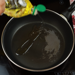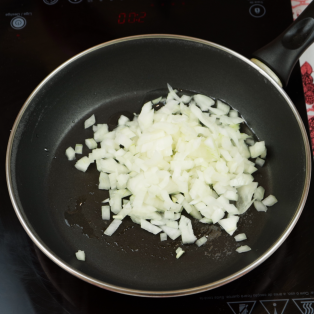 9.Quando esquentar, adicione a cebola picada, o dente de alho e misture