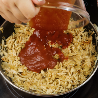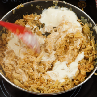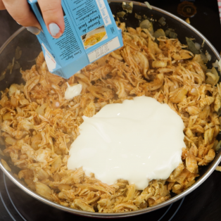11.Após misturar, adicione o molho de tomate e o creme de leite