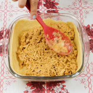 13.Quando o recheio estiver pronto, coloque-o na travessa