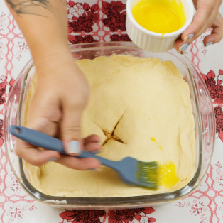 16.Com um pincel, espalhe a gema do ovo sobre a massa para dourar