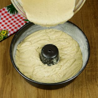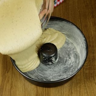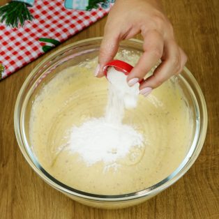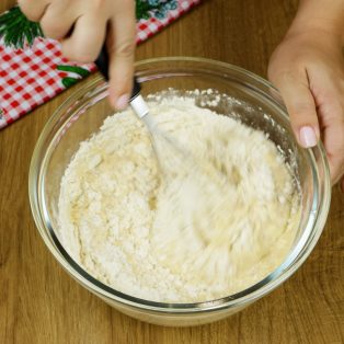 4.Após isso, pegue uma vasilha, despeje a mistura e adicione a farinha.