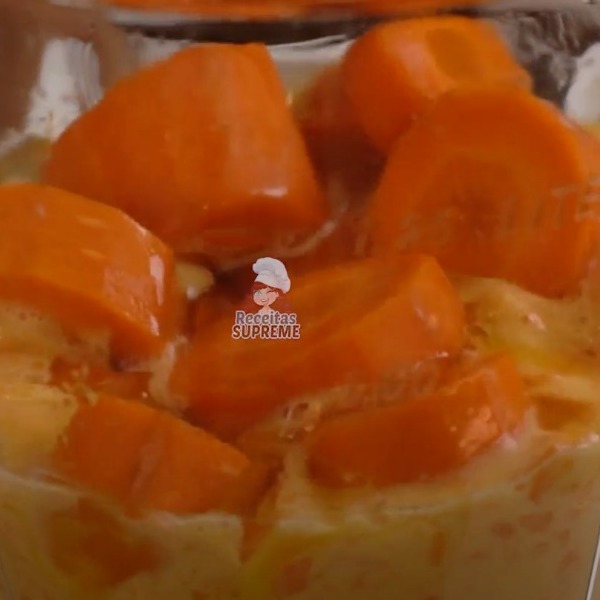 Inicialmente, descasque as cenouras e pique em rodelas, com o auxílio de um liquidificador coloque o óleo, as cenouras e os ovos, bata até formar um creme homogêneo.