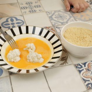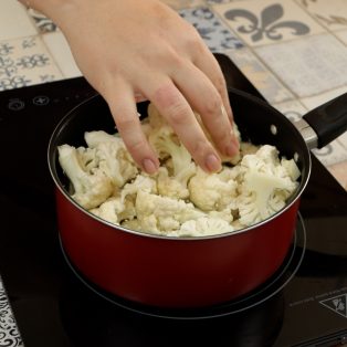 1.Corte a couve flor e em uma panela com água adicione a couve flor e deixe cozinhar até ficar ao dente.