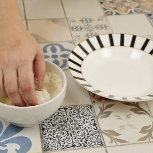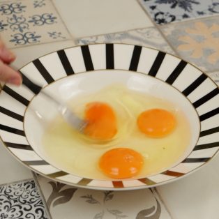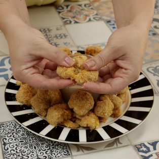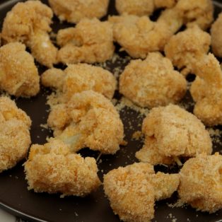 5.Passe a couve flor na farinha, no ovo, e depois passe na farinha novamente.
