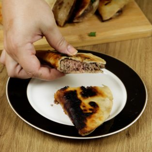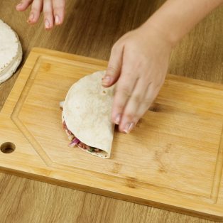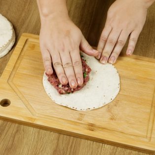 7.Em seguida pegue a tortilla e a recheie com a carne moída