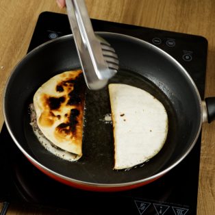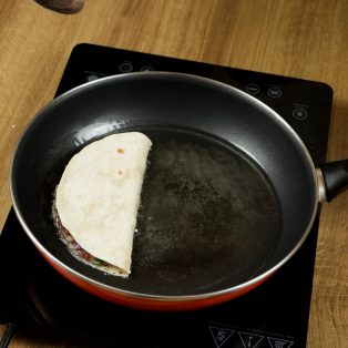 10.Coloque a tortilla e frite a fogo médio por 5-6 minutos