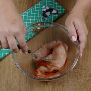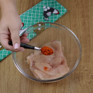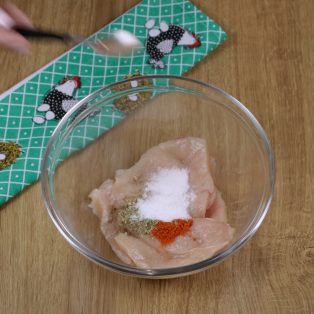 1.Em um recipiente coloque o frango junto a páprica, o orégano e a pimenta do reino.