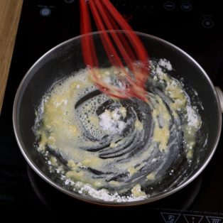7.Em seguida a farinha e mexa até ficar cremoso.
