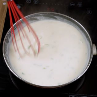 8.Após isso adicione leite aos poucos até ir virando creme.