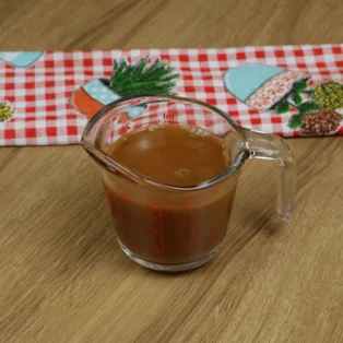 Em um recipiente de vidro, adicione 200ml de água, 50ml de molho de soja, 1 colher de amido de milho e misture bem tudo.