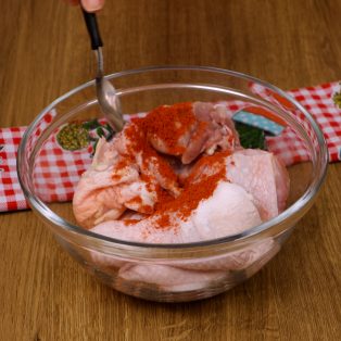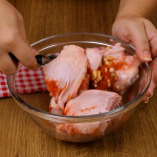 3.Mexa bem até que todos os frangos fiquem temperados.