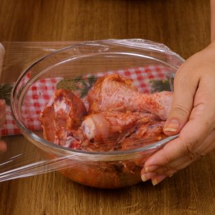 4.Cubra com um plástico filme e deixe marinar por 30 minutos.