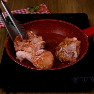 10.Em seguida adicione as coxas e galinha e deixe fritar mais um pouco.