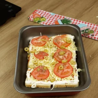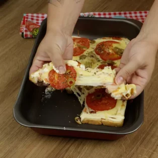 Faça para servir no jantar esta deliciosa receita de pizza feita com fatias de pão. Uma receita super prática, fácil e com pouquíssimos ingredientes necessários. Veja abaixo a lista de ingredientes e o modo de preparo!