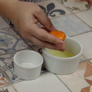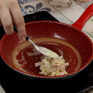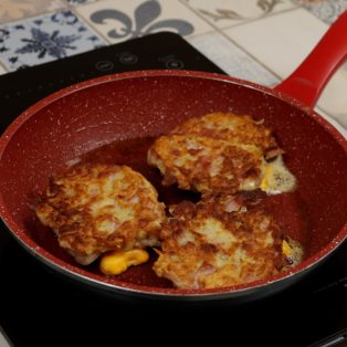 11.Dentro do buraco coloque as gemas e frite bem por cerca de 5 minutos.
