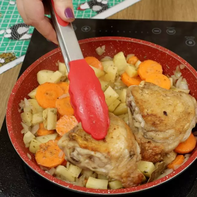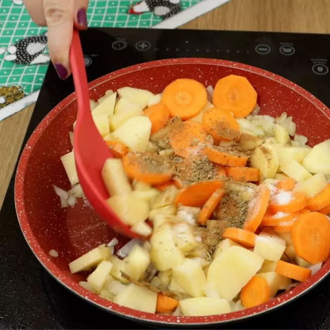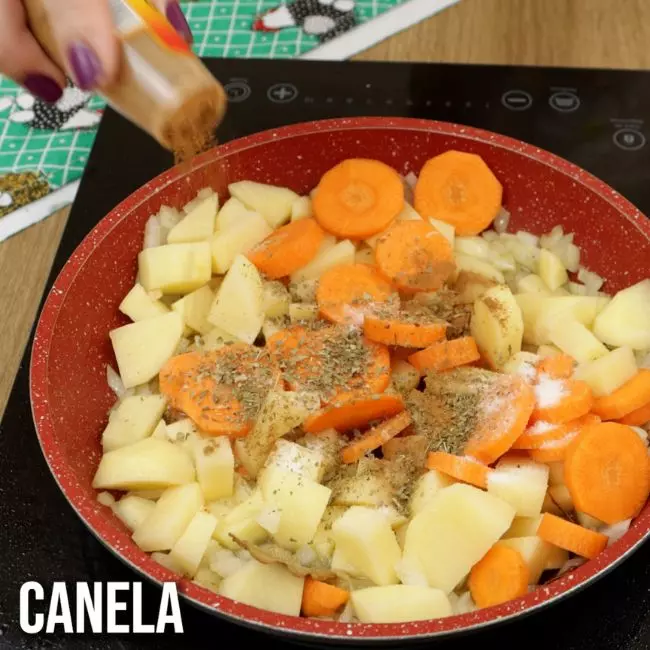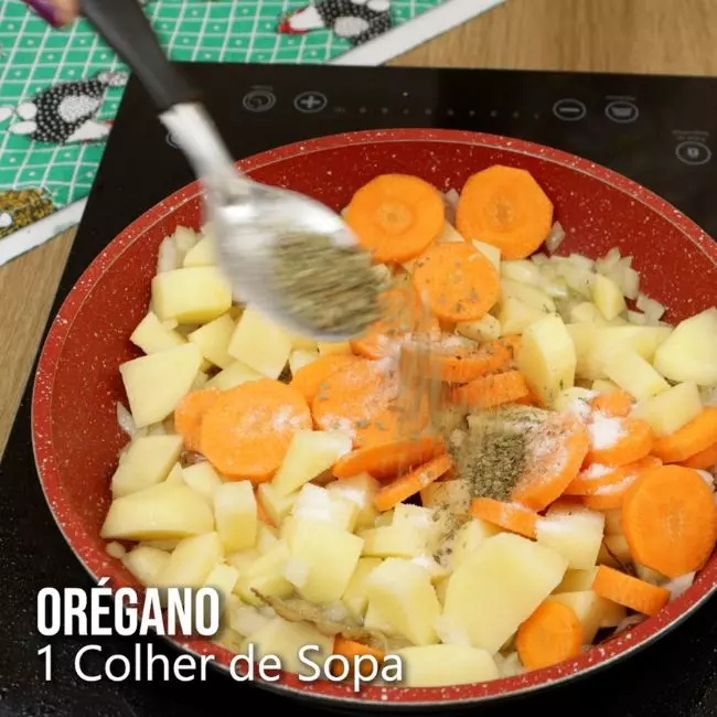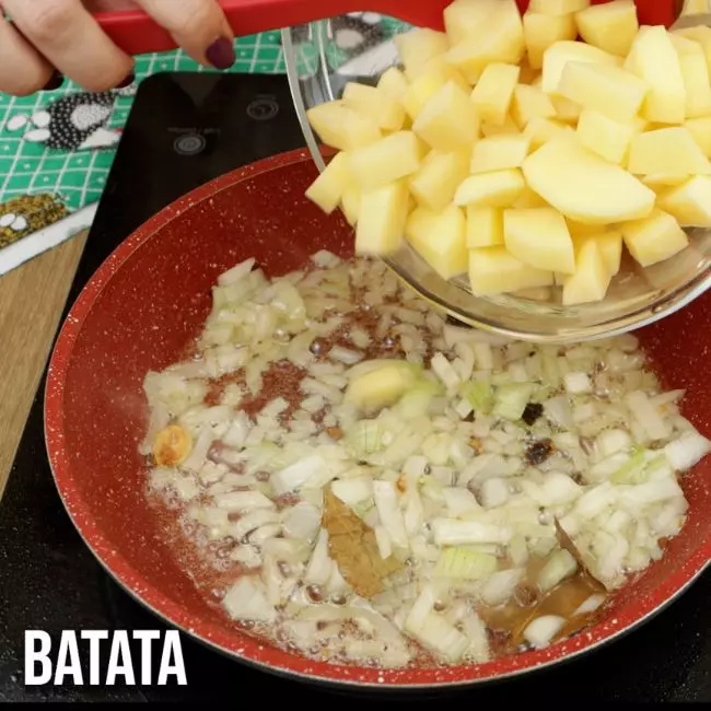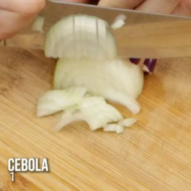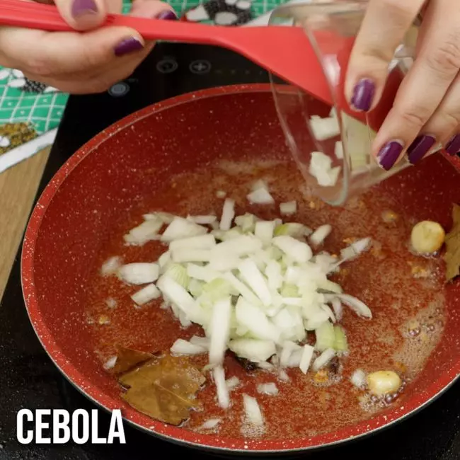 16.Em seguida, utilize a mesma panela para fritar a cebola.