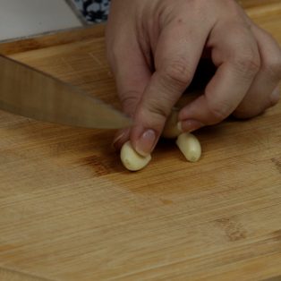 1.Pique os 2 dentes de alho.