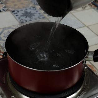 2.Encha uma panela com água quente e o sal.