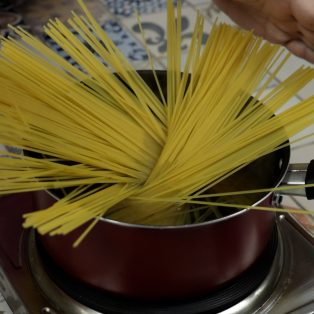 3.Adicione o espaguete e deixe cozinhar.