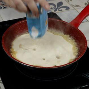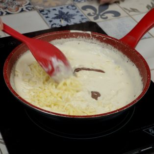 6.Coloque o creme de leite e mexa por 5 minutos.