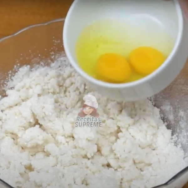 Quando misturado, acrescente os dois ovos e misture mais um pouco. A massa vai ficar um pouco mole mesmo.