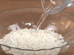 Inicialmente, em uma vasilha deixe as gramas da canjica de molho por 6 horas, isso fará com que o grão amoleça.