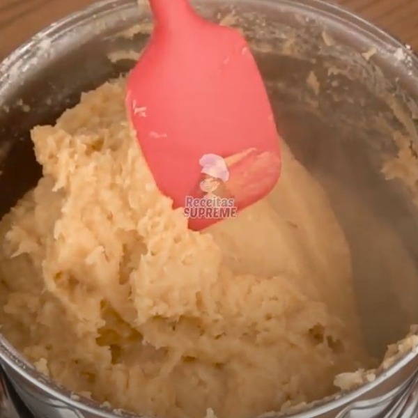 Em seguida, mexa até formar uma massa, quando desgrudar da panela está pronto, reserve.