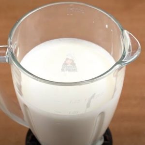 Posteriormente, com o auxílio de um liquidificador coloque 2 caixinhas creme de leite, 1 lata leite condensado e a gelatina incolor hidratada, bata por alguns minutos.