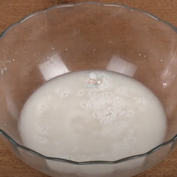 Para iniciar, em um recipiente adicione a água morna com o açúcar e o fermento biológico, misture bem e deixe descansar por 10 minutos, passando esse tempo adicione o sal e o óleo e mexa.