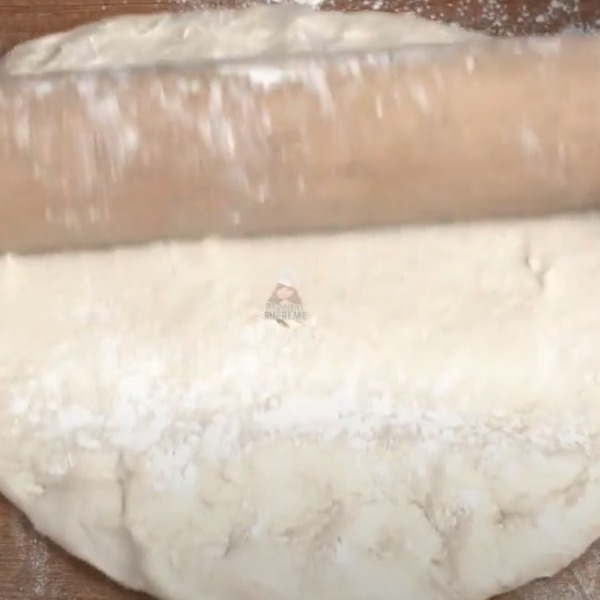 Logo depois, deixe descansar por 30 minutos, prepare o recheio e corte a calabresa em rodelas, após passar o tempo de descanso da massa, abra com a ajuda de um rolo de madeira, você pode usar uma garrafa de vinho vai fazer o mesmo papel.