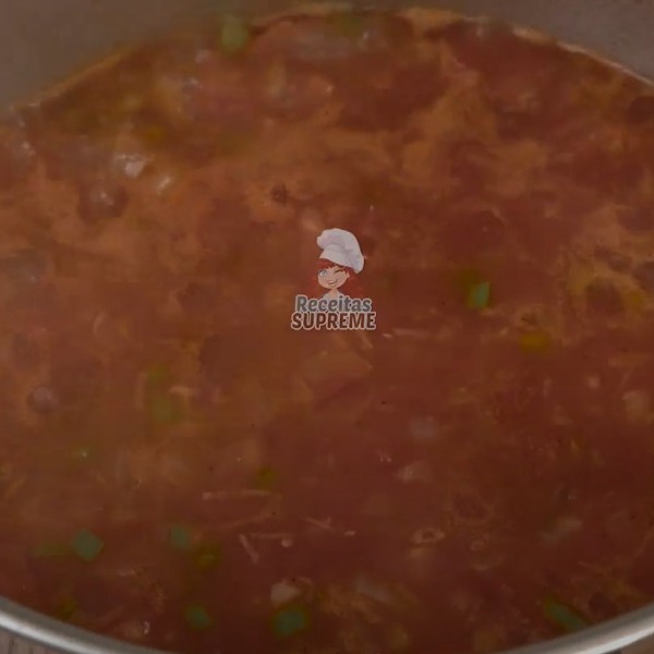 Logo depois, em uma panela quente coloque azeite e a cebola deixe murchar um pouco, coloque o alho e frite mais um pouco. Na mesma panela frite o pimentão e logo depois o tomate, o extrato de tomate, sal e pimenta. Adicione uma xícara de água e deixe cozinhar.