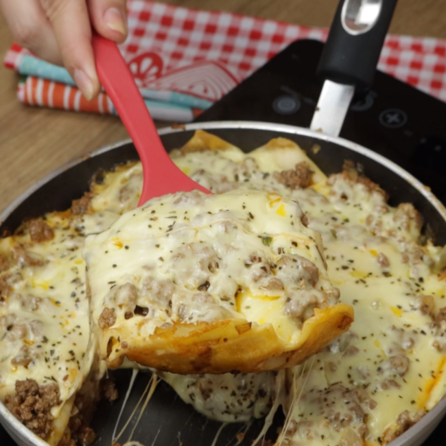Finalize com orégano à gosto e sirva a sua deliciosa lasanha de carne moída rápida e prática.