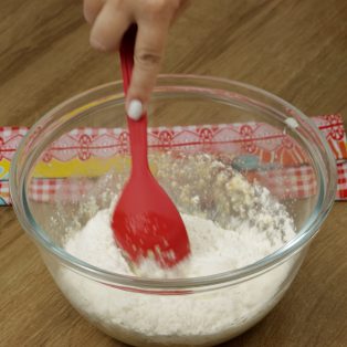 Em uma tigela de vidro, ponha 200ml de leite morno, 3 colheres de azeite, 1 ovo, 1 colher de sal, 3 colheres de açúcar, 1 saqueta de fermento desidratado, misture bem tudo e adicione mais 300g de farinha de trigo.
