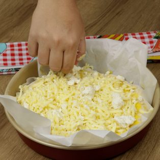 Coloque em uma forma que possa ir ao forno, pincele 1 gema pela massa, salpique queijo por cima e ponha no forno por 180 graus por 25 minutos.