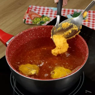 Em uma panela com óleo quente, ponha colheradas da mistura para fritar.